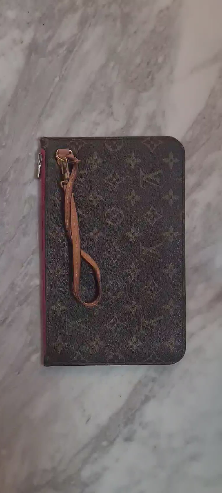 Pochette Louis Vuitton Neverfull en toile monogram et intérieur pivoine.